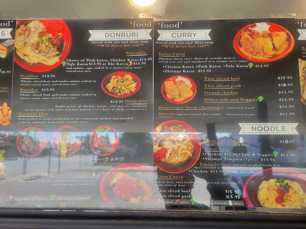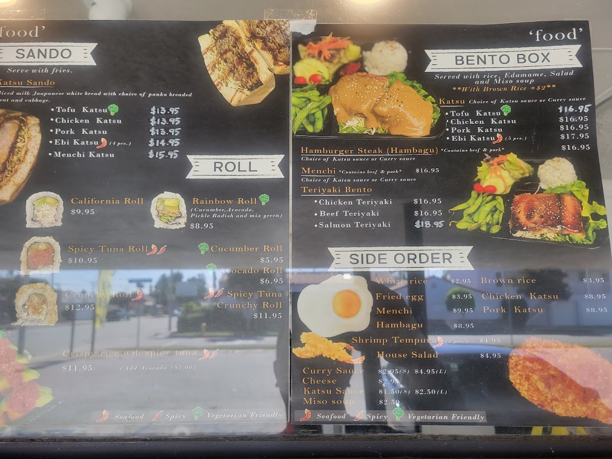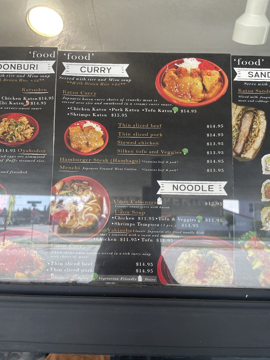 Contains beef & park. choice of katsu sauce or curry sauce.